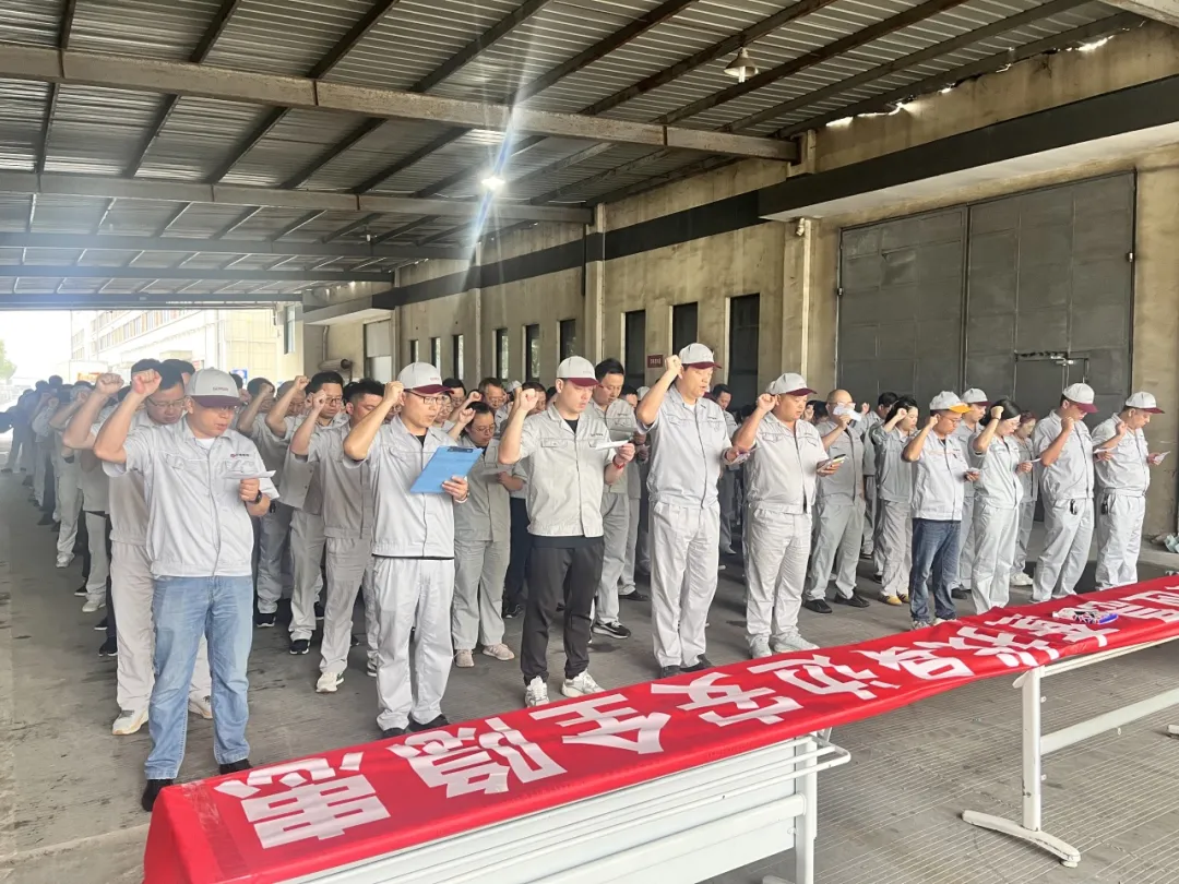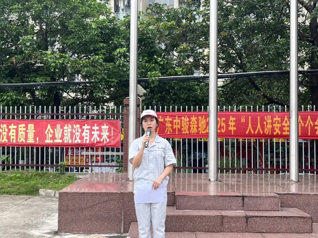 2025 年 6 月 2 日清晨,借着全国第24个安全生产月契机,中骏森驰股份三地工厂同步开展主题为“人人讲安全 个个会应急——查找身边安全隐患”安全环保月活动启动仪式,标志着为期一个月的安全环保专项行动正式拉开帷幕。